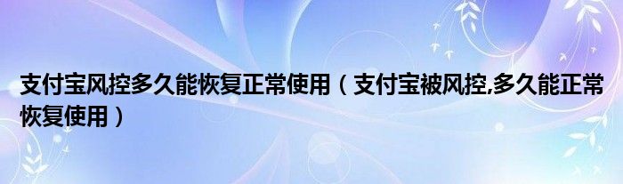 支付宝风控多久能恢复正常使用(支付宝被风控,多久能正常恢复使用)