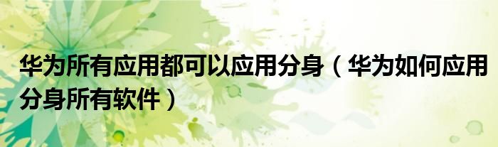 华为所有应用都可以应用分身(华为如何应用分身所有软件)