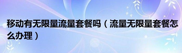 导读 大家好,小会来为大家解答以的上问题。移动有无限量流量套餐吗,流量无限量套餐怎么办理这个很多人还不知道,现在让我们一起来看看了解下吧
