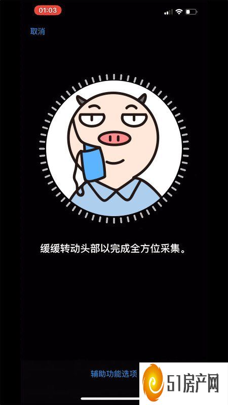 第三步:触发人脸记录屏后,保持口罩与人脸的相对位置不变,旋转头部记录人脸,或者保持头部不动,让手机绕着头部旋转。
