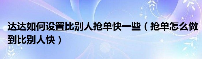 达达如何设置比别人抢单快一些(抢单怎么做到比别人快)