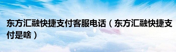 东方汇融快捷支付客服电话(东方汇融快捷支付是啥)