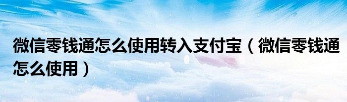 微信零钱通怎么使用转入支付宝(微信零钱通怎么使用)