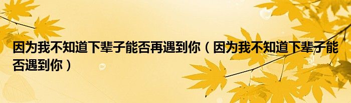 大家好,麟非来为大家解答以上问题,因为我不知道下辈子能否再遇到你,因为我不知道下辈子能否遇到你很多人还不知道,现在让我们一起来看看吧!