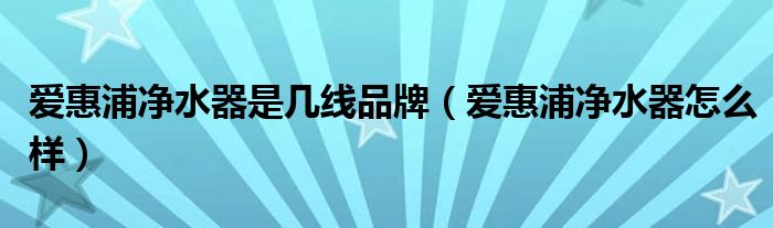爱惠浦净水器是几线品牌(爱惠浦净水器怎么样)