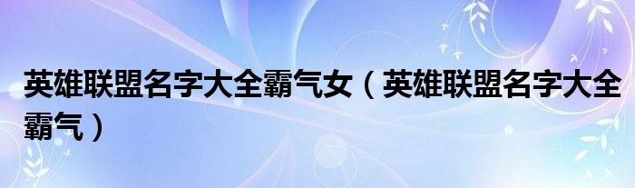 英雄联盟名字大全霸气女(英雄联盟名字大全霸气)