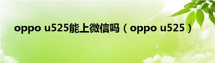 大家好,麟非来为大家解答以上问题,oppo u525能上微信吗,oppo u525很多人还不知道,现在让我们一起来看看吧!