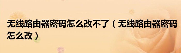 无线路由器密码怎么改不了(无线路由器密码怎么改)