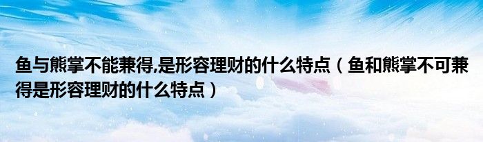 鱼与熊掌不能兼得,是形容理财的什么特点(鱼和熊掌不可兼得是形容理财的什么特点)
