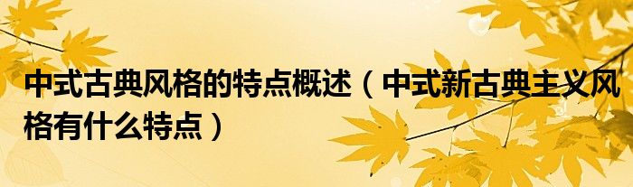 中式古典风格的特点概述(中式新古典主义风格有什么特点)