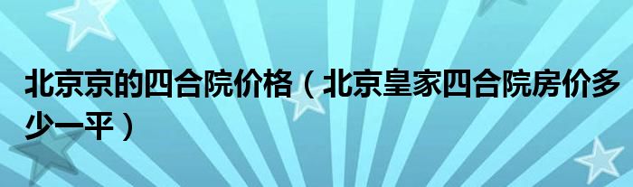 北京京的四合院价格(北京皇家四合院房价多少一平)