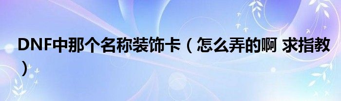大家好,小编慧慧来为大家解答以上的问题。DNF中那个名称装饰卡,怎么弄的啊 求指教很多人还不知道,现在让我们一起来看看吧!