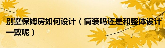 别墅保姆房如何设计(简装吗还是和整体设计一致呢)