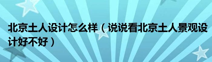 导读 大家好,小编慧慧来为大家解答以上的问题。北京土人设计怎么样,说说看北京土人景观设计好不好很多人还不知道,现在让我们一起来看看吧!1