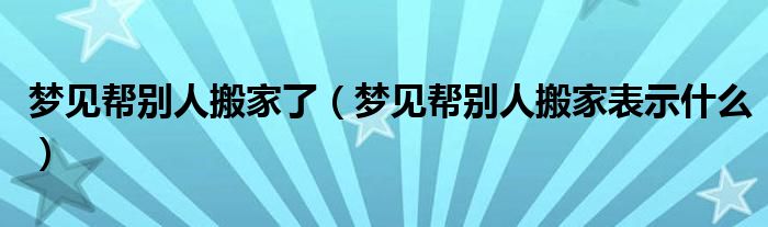 梦见帮别人搬家了(梦见帮别人搬家表示什么)