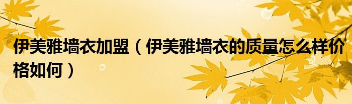 伊美雅墙衣加盟(伊美雅墙衣的质量怎么样价格如何)