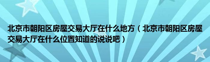 北京市朝阳区房屋交易大厅在什么地方(北京市朝阳区房屋交易大厅在什么位置知道的说说吧)