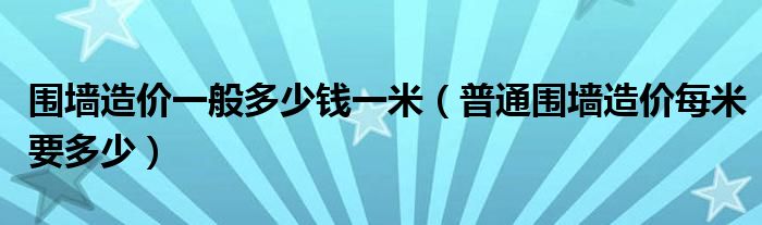 围墙造价一般多少钱一米(普通围墙造价每米要多少)