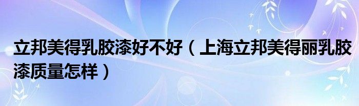 立邦美得乳胶漆好不好(上海立邦美得丽乳胶漆质量怎样)