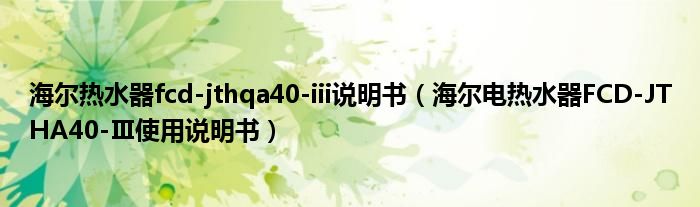 海尔热水器fcd-jthqa40-iii说明书(海尔电热水器FCD-JTHA40-Ⅲ使用说明书)