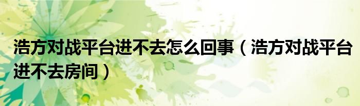 浩方对战平台进不去怎么回事(浩方对战平台进不去房间)