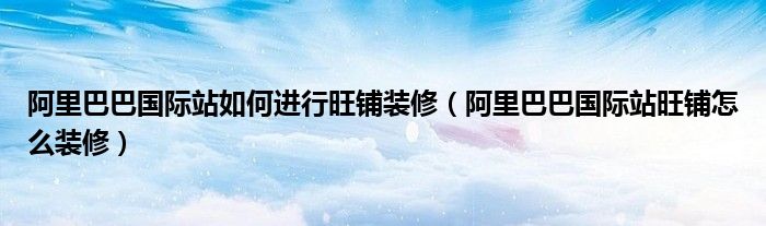 阿里巴巴国际站如何进行旺铺装修(阿里巴巴国际站旺铺怎么装修)