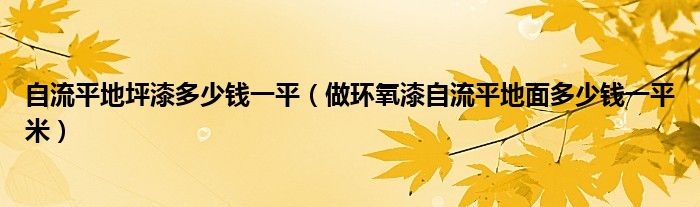 导读 大家好,小编慧慧来为大家解答以上的问题。自流平地坪漆多少钱一平,做环氧漆自流平地面多少钱一平米很多人还不知道,现在让我们一起来看看