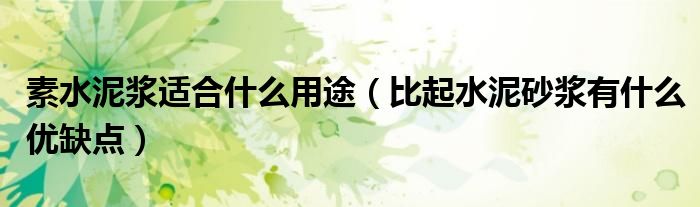 素水泥浆适合什么用途(比起水泥砂浆有什么优缺点)