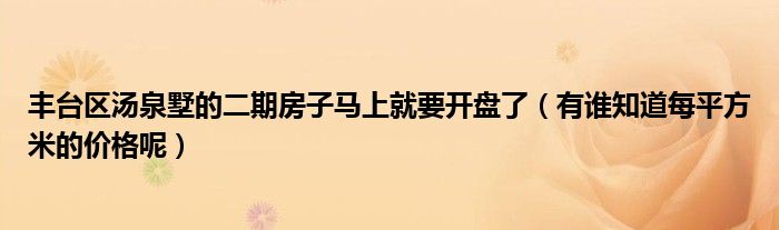 导读 大家好,小编慧慧来为大家解答以上的问题。丰台区汤泉墅的二期房子马上就要开盘了,有谁知道每平方米的价格呢很多人还不知道,现在让我们一