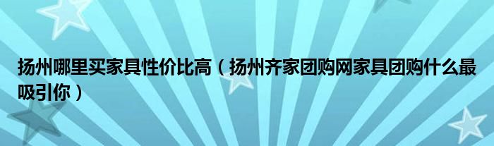 导读 大家好,小编慧慧来为大家解答以上的问题。扬州哪里买家具性价比高,扬州齐家团购网家具团购什么最吸引你很多人还不知道,现在让我们一起来