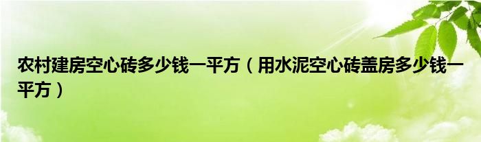 农村建房空心砖多少钱一平方(用水泥空心砖盖房多少钱一平方)