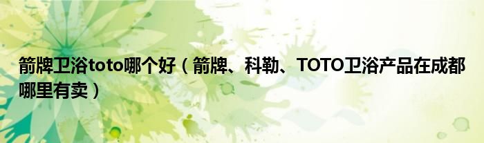 导读 大家好,小编慧慧来为大家解答以上的问题。箭牌卫浴toto哪个好,箭牌、科勒、TOTO卫浴产品在成都哪里有卖很多人还不知道,现在让我们一起来