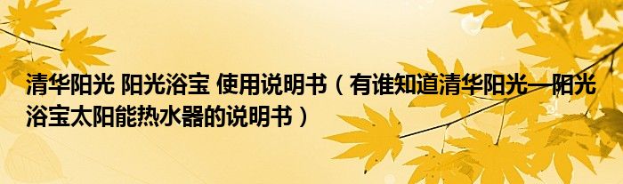 导读 大家好,小编慧慧来为大家解答以上的问题。清华阳光 阳光浴宝 使用说明书,有谁知道清华阳光—阳光浴宝太阳能热水器的说明书很多人还不知