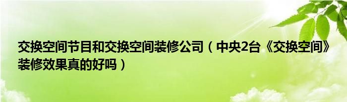 大家好,小编慧慧来为大家解答以上的问题。交换空间节目和交换空间装修公司,中央2台《交换空间》装修效果真的好吗很多人还不知道,现在让我们一起来看看吧!