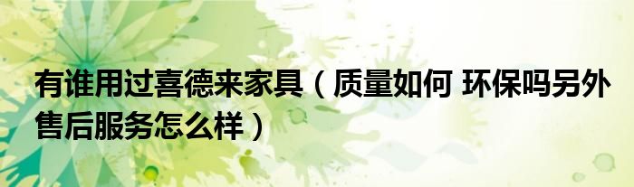 导读 大家好,小编慧慧来为大家解答以上的问题。有谁用过喜德来家具,质量如何 环保吗另外售后服务怎么样很多人还不知道,现在让我们一起来看看