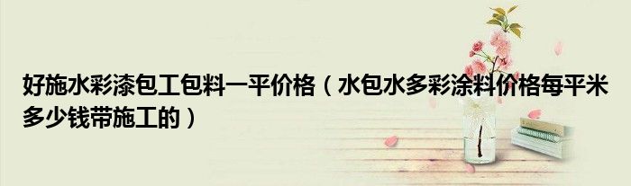 导读 大家好,小编慧慧来为大家解答以上的问题。好施水彩漆包工包料一平价格,水包水多彩涂料价格每平米多少钱带施工的很多人还不知道,现在让我