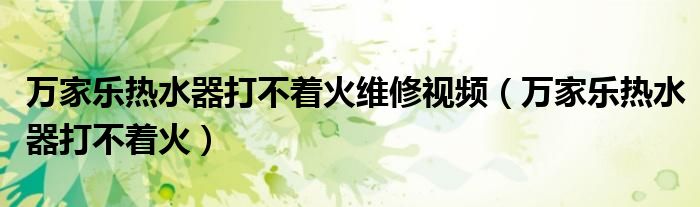 万家乐热水器打不着火维修视频(万家乐热水器打不着火)