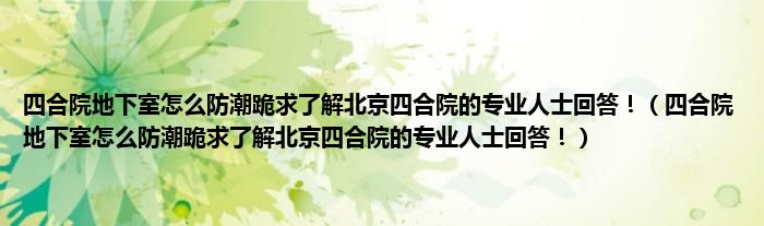 四合院地下室怎么防潮跪求了解北京四合院的专业人士回答!(四合院地下室怎么防潮跪求了解北京四合院的专业人士回答!)