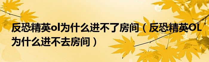 反恐精英ol为什么进不了房间(反恐精英OL为什么进不去房间)