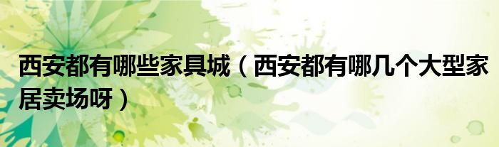 导读 大家好,小编慧慧来为大家解答以上的问题。西安都有哪些家具城,西安都有哪几个大型家居卖场呀很多人还不知道,现在让我们一起来看看吧!1