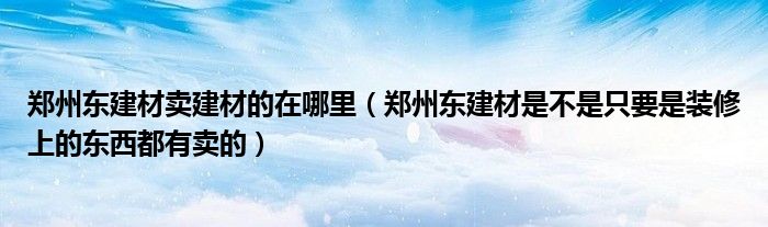 郑州东建材卖建材的在哪里(郑州东建材是不是只要是装修上的东西都有卖的)