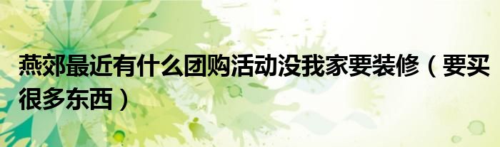导读 大家好,小编慧慧来为大家解答以上的问题。燕郊最近有什么团购活动没我家要装修,要买很多东西很多人还不知道,现在让我们一起来看看吧!1