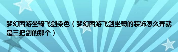 梦幻西游坐骑飞剑染色(梦幻西游飞剑坐骑的装饰怎么弄就是三把剑的那个)