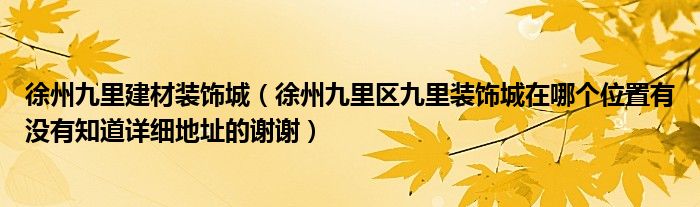 徐州九里建材装饰城(徐州九里区九里装饰城在哪个位置有没有知道详细地址的谢谢)