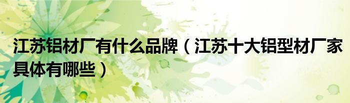 导读 大家好,小编慧慧来为大家解答以上的问题。江苏铝材厂有什么品牌,江苏十大铝型材厂家具体有哪些很多人还不知道,现在让我们一起来看看吧!