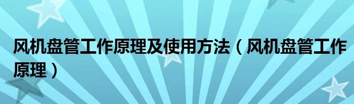 风机盘管工作原理及使用方法(风机盘管工作原理)