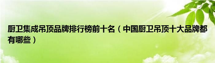 导读 大家好,小编慧慧来为大家解答以上的问题。厨卫集成吊顶品牌排行榜前十名,中国厨卫吊顶十大品牌都有哪些很多人还不知道,现在让我们一起来