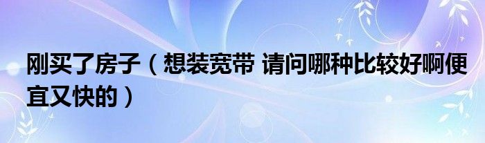 刚买了房子(想装宽带 请问哪种比较好啊便宜又快的)