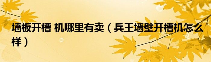 大家好,小编慧慧来为大家解答以上的问题。墙板开槽 机哪里有卖,兵王墙壁开槽机怎么样很多人还不知道,现在让我们一起来看看吧!