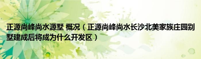 正源尚峰尚水源墅 概况(正源尚峰尚水长沙北美家族庄园别墅建成后将成为什么开发区)